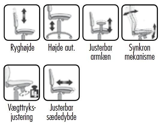 Komfortabel professionel kontorstol med flydende vippemekanisme, som kan indstilles efter vægt og kan låses i 4 positioner.