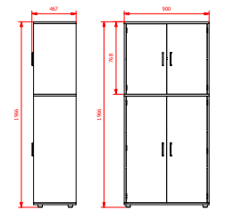 Dobbelt skab med to forskellige størrelser låger. En af de højere skabe som er 200cm.